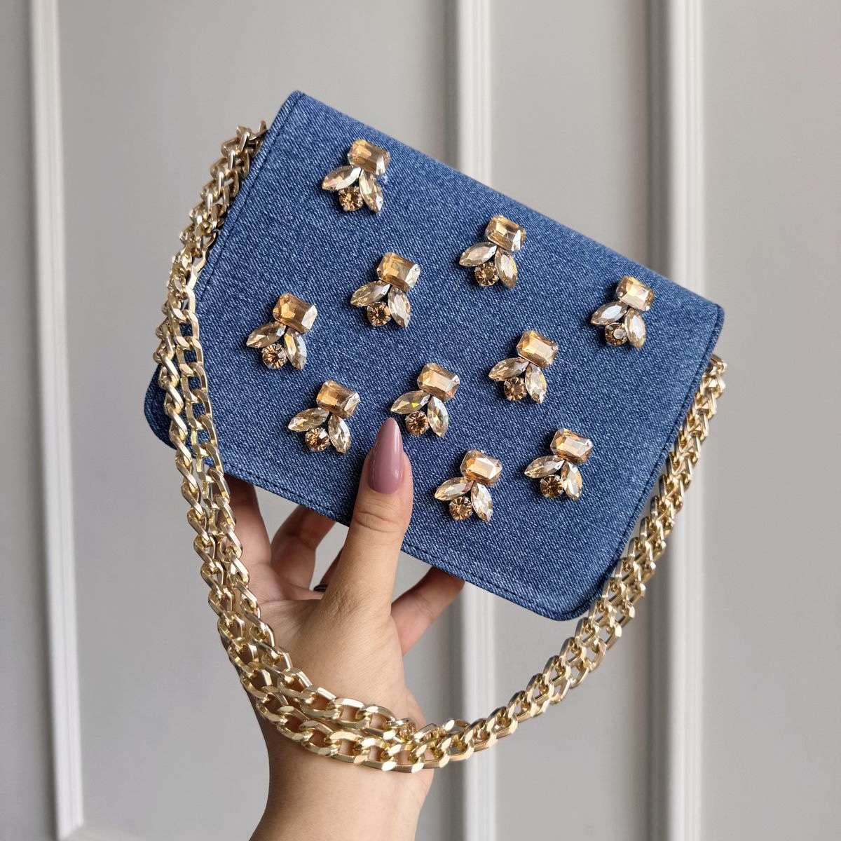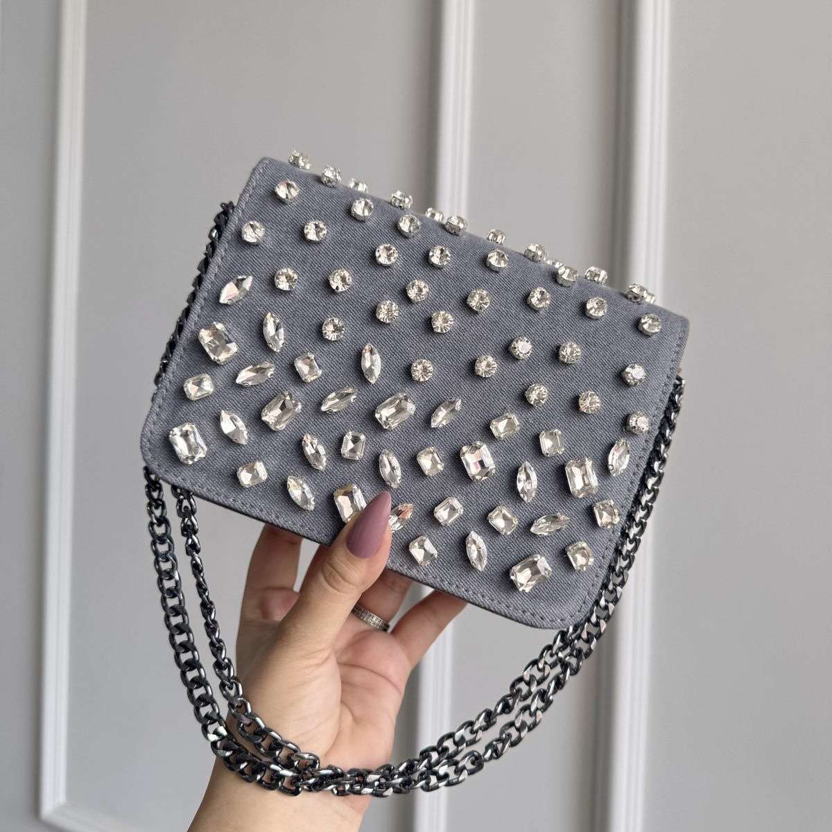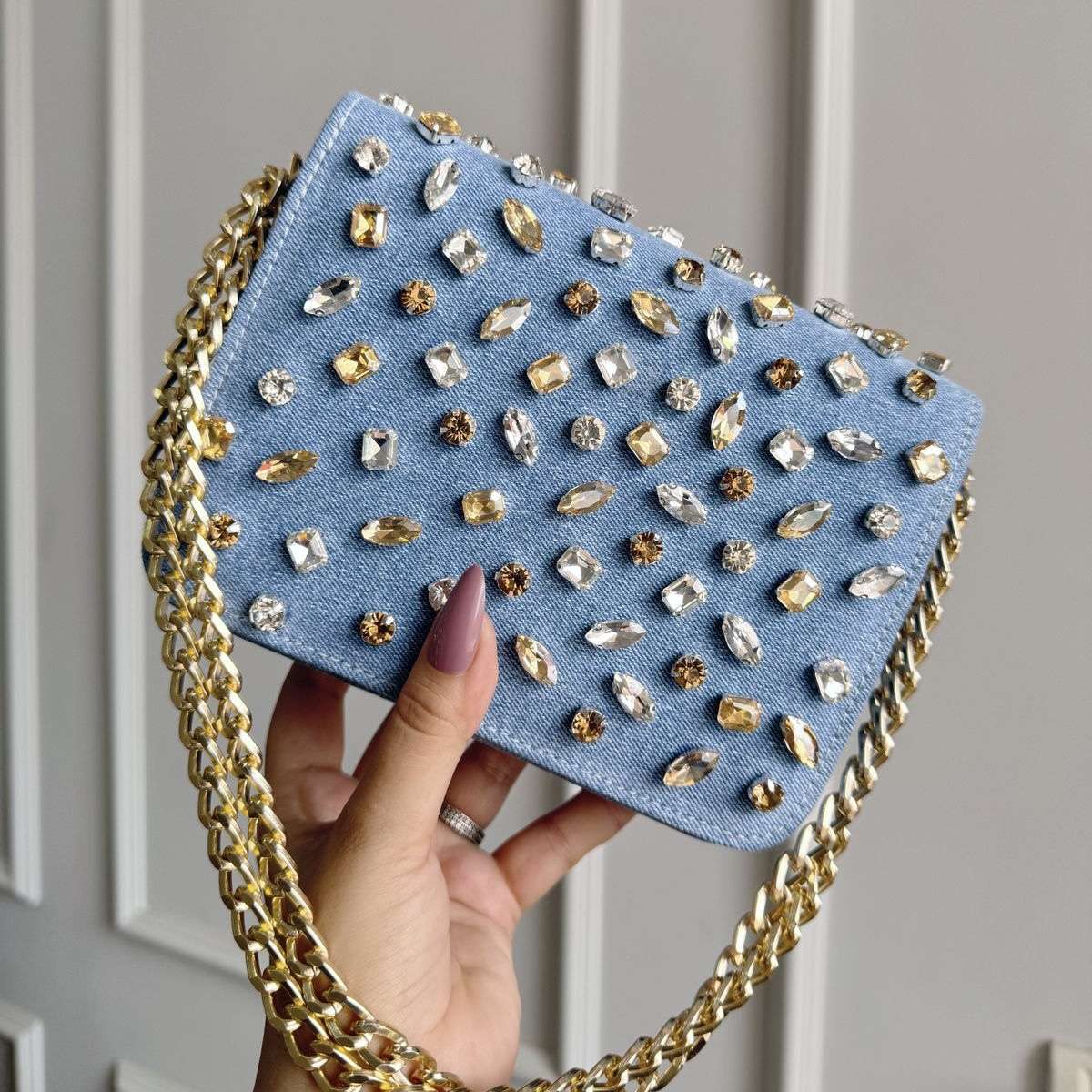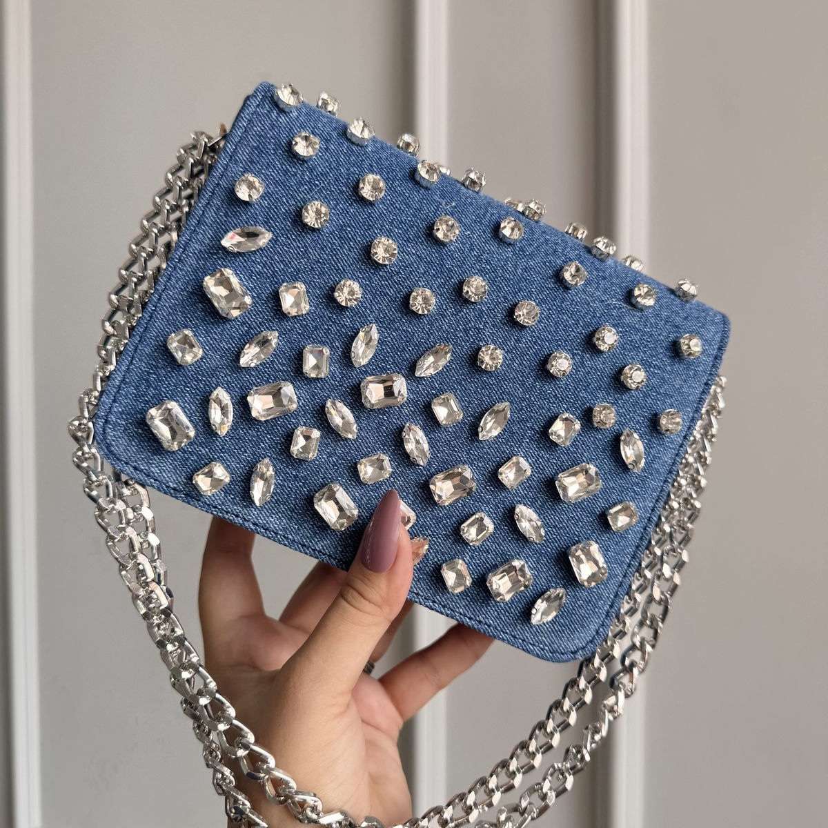 •Material: High-quality denim with crystal embellishments