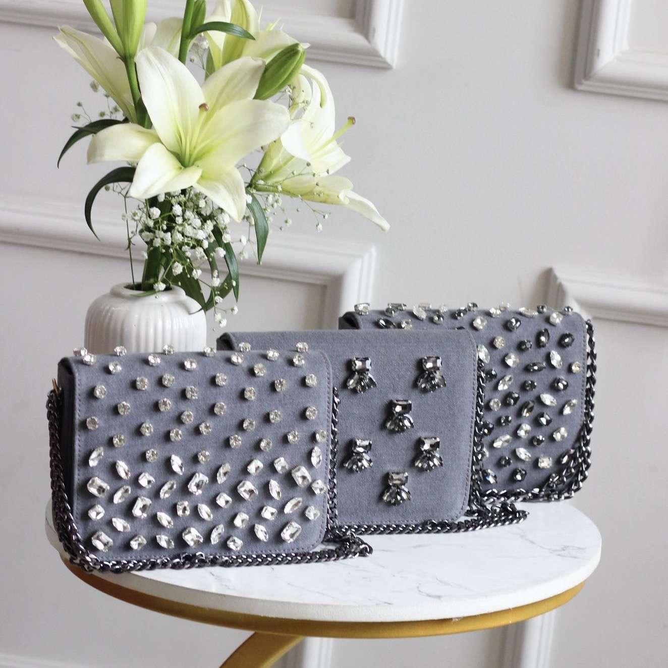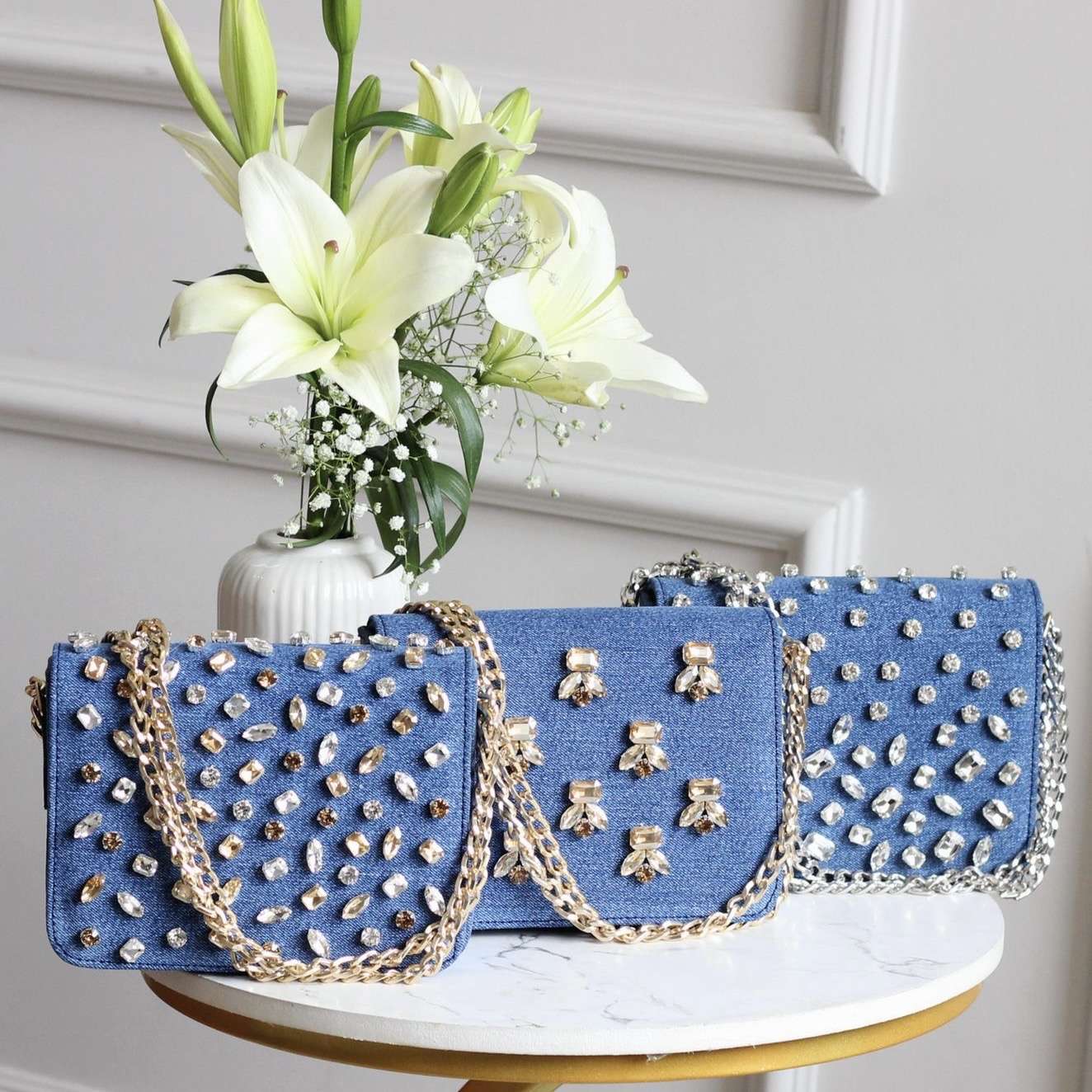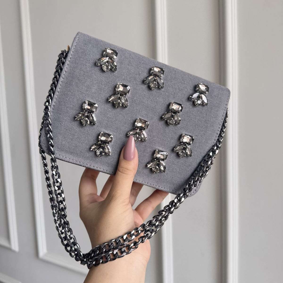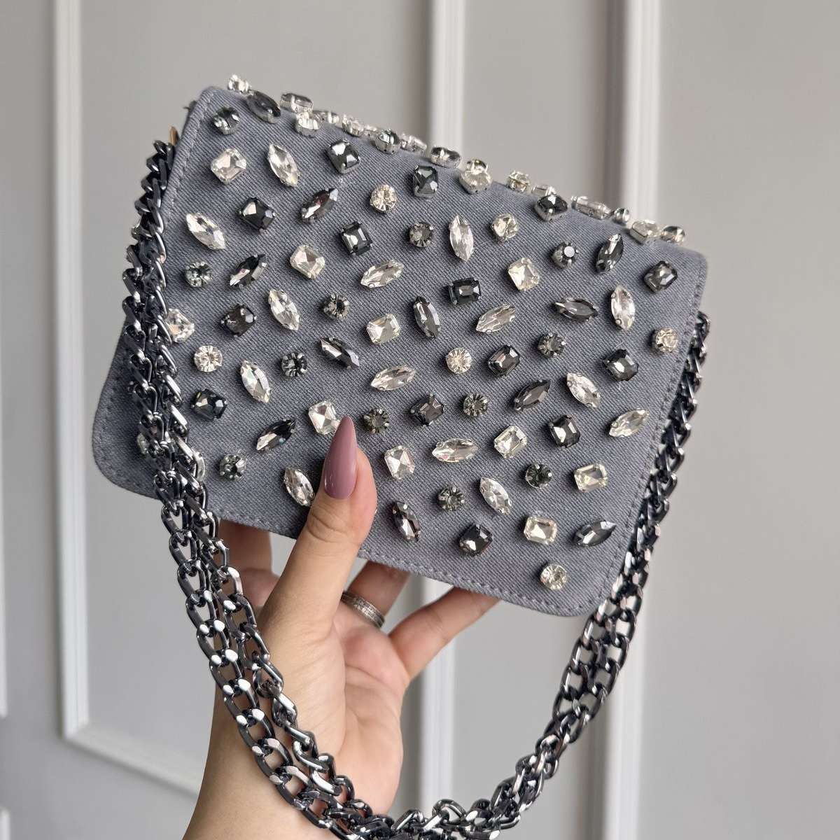 •Material: High-quality denim with crystal embellishments