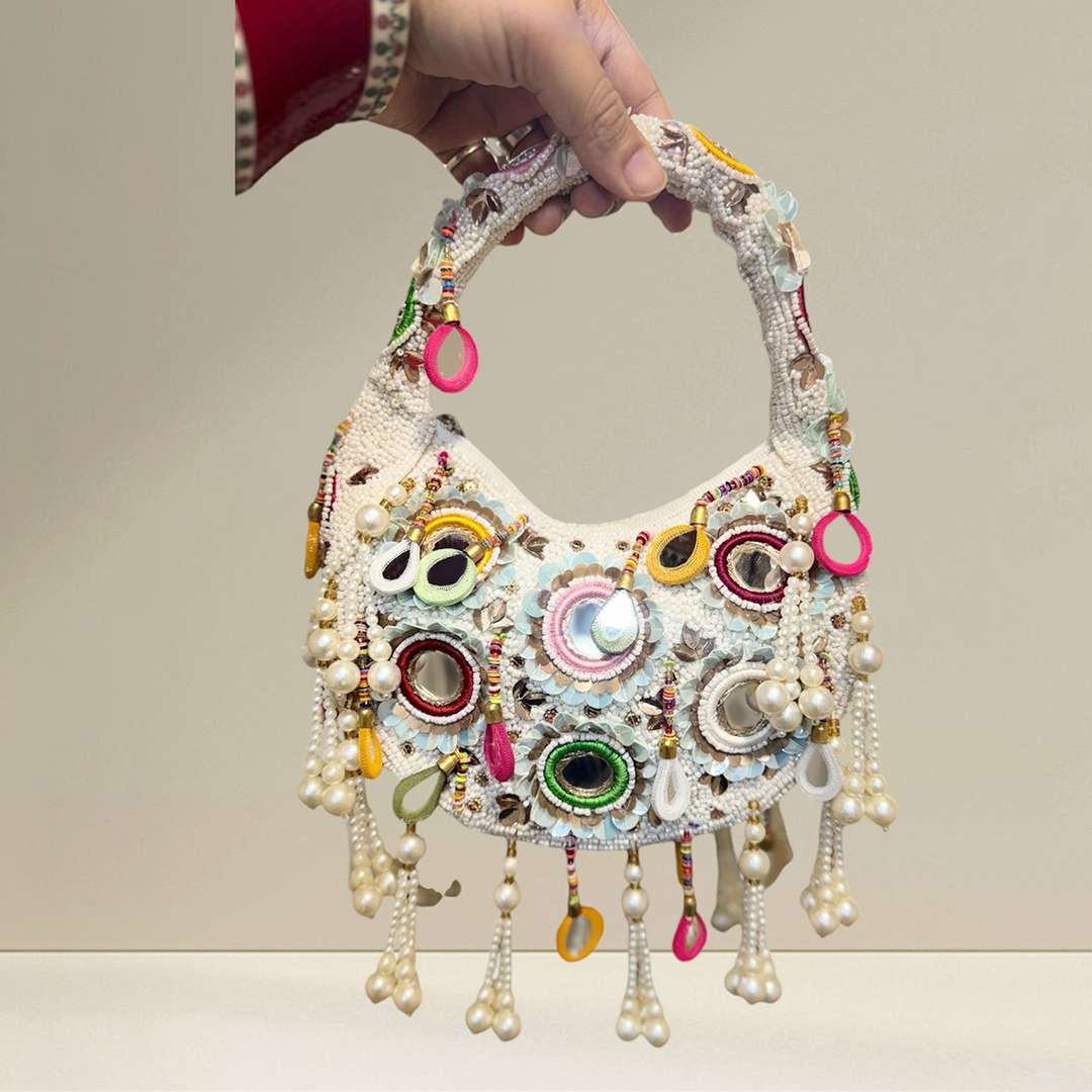 Elevate your look with the Mirror Moon Potli—a blend of artistry and elegance that’s perfect for any occasion!