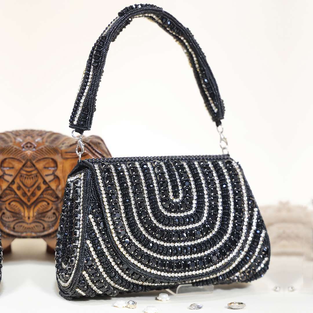 The Queensbury Flap Clutch is the epitome of opulence, designed to captivate attention with its stunning embellishments and sophisticated craftsmanship. Measuring 8 x 4 inches, this clutch is adorned with intricate detailing on both sides, offering a sense of luxury that is unmatched. The heavy, ornate handle not only adds to its regal look but also provides a comfortable grip, making it both functional and fashionable.