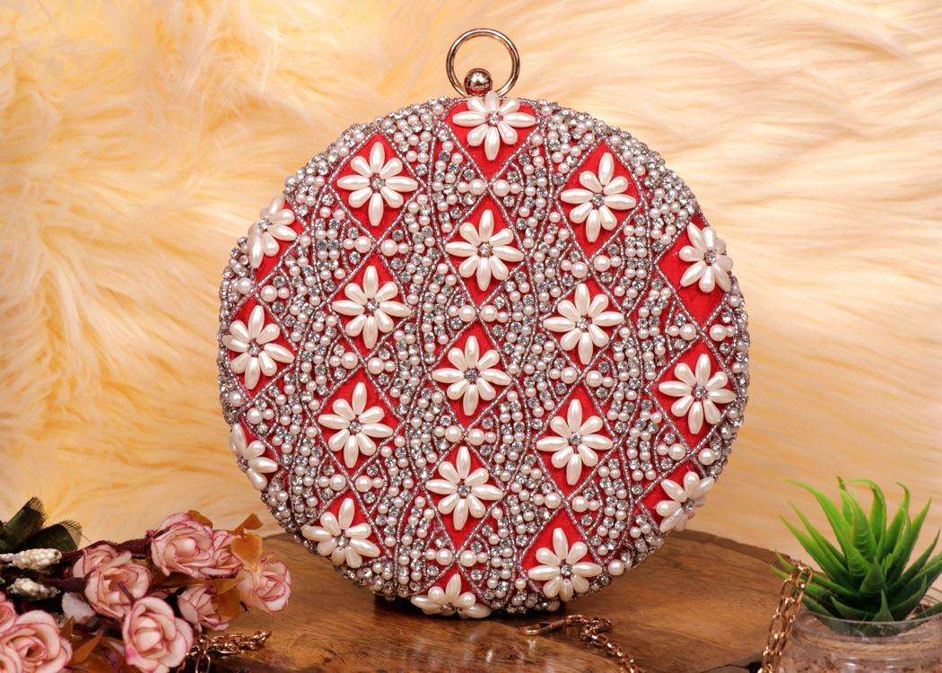 Add a refined touch to your ensemble with these handcrafted round clutches. Featuring exquisite craftmanship on the front side, meticulously detailed to create a chic and opulent look. The back side of all clutches is kept plain for a minimalist finish and enhanced comfort in carrying. Perfect for ethnic celebrations, weddings, parties, or evening outings, these clutches combine traditional artistry with modern elegance.