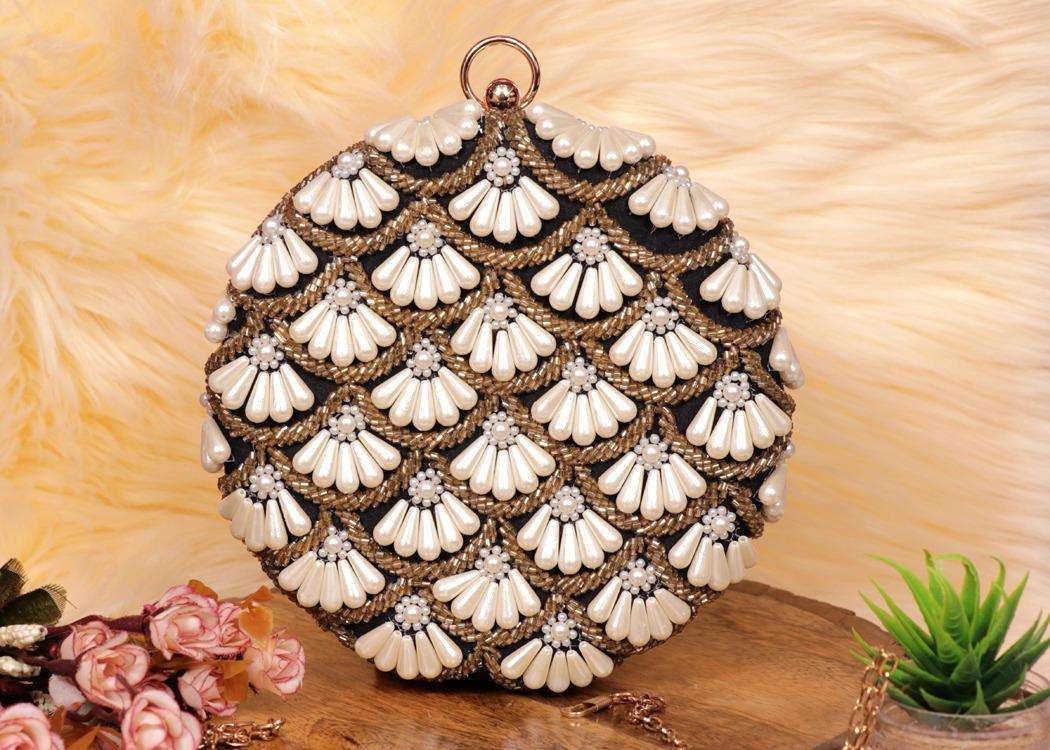 Add a refined touch to your ensemble with these handcrafted round clutches. Featuring exquisite craftmanship on the front side, meticulously detailed to create a chic and opulent look. The back side of all clutches is kept plain for a minimalist finish and enhanced comfort in carrying. Perfect for ethnic celebrations, weddings, parties, or evening outings, these clutches combine traditional artistry with modern elegance.